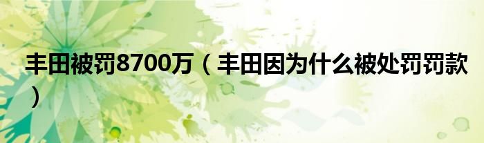 大家好,綜合小編來為大家講解下。豐田被罰8700萬,豐田因?yàn)槭裁幢惶幜P罰款很多人還不知道,現(xiàn)在讓我們一起來看看吧!