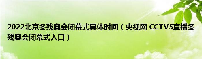 大家好,小安來為大家解答以上的問題2022北京冬殘奧會(huì)閉幕式具體時(shí)間,央視網(wǎng) CCTV5直播冬殘奧會(huì)閉幕式入口這個(gè)很多人還不知道,現(xiàn)在讓我們一起來看看吧!