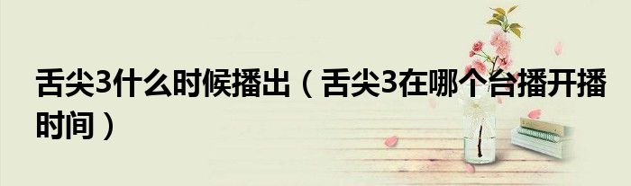 大家好,綜合小編來為大家講解下。舌尖3什么時候播出,舌尖3在哪個臺播開播時間很多人還不知道,現在讓我們一起來看看吧!