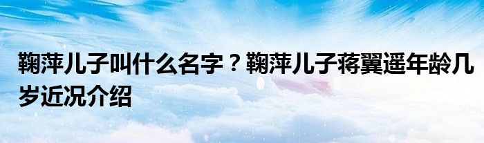 大家好,小安來為大家解答以上的問題鞠萍兒子叫什么名字?鞠萍兒子蔣翼遙年齡幾歲近況介紹這個很多人還不知道,現在讓我們一起來看看吧!