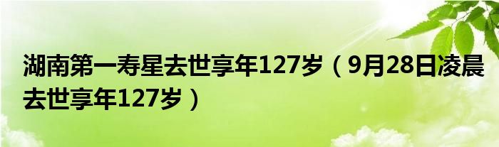 大家好,綜合小編來為大家講解下。湖南第一壽星去世享年127歲,9月28日凌晨去世享年127歲很多人還不知道,現在讓我們一起來看看吧!