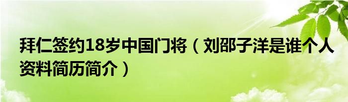 大家好,綜合小編來為大家講解下。拜仁簽約18歲中國門將,劉邵子洋是誰個(gè)人資料簡歷簡介很多人還不知道,現(xiàn)在讓我們一起來看看吧!