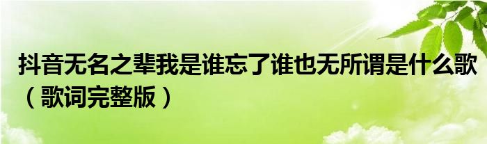 無名之輩我是誰忘了誰也無所謂什么歌