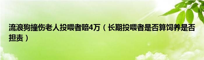大家好,綜合小編來為大家講解下。流浪狗撞傷老人投喂者賠4萬,長期投喂者是否算飼養(yǎng)是否擔(dān)責(zé)很多人還不知道,現(xiàn)在讓我們一起來看看吧!