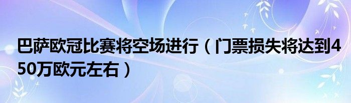 大家好,綜合小編來為大家講解下。巴薩歐冠比賽將空場進行,門票損失將達到450萬歐元左右很多人還不知道,現在讓我們一起來看看吧!
