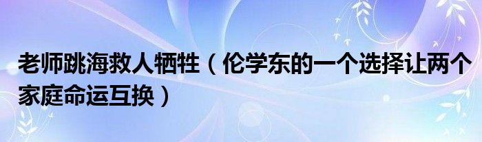大家好,綜合小編來為大家講解下。老師跳海救人犧牲,倫學(xué)東的一個(gè)選擇讓兩個(gè)家庭命運(yùn)互換很多人還不知道,現(xiàn)在讓我們一起來看看吧!