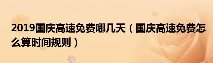 2019年國慶節(jié)放假時(shí)間已確定,根據(jù)國務(wù)院辦公廳通知,國慶七天假。放假時(shí)間:10月1日(國慶節(jié))至7日(重陽節(jié))放假一周;另9月29日(周日)和10月12日(周六)上班。今年國慶節(jié)高速也是免費(fèi)通行的,那么2019國慶高速免費(fèi)哪幾天呢?下面小編給大家介紹下今年國慶節(jié)高速免費(fèi)時(shí)間表還有規(guī)則介紹。
