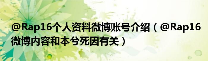 大家好,小安來為大家解答以上的問題@Rap16個人資料微博賬號介紹,@Rap16微博內(nèi)容和本兮死因有關(guān)這個很多人還不知道,現(xiàn)在讓我們一起來看看吧!