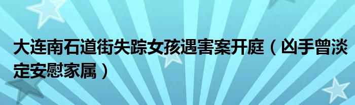 大家好,小安來為大家解答以上的問題大連南石道街失蹤女孩遇害案開庭,兇手曾淡定安慰家屬這個很多人還不知道,現在讓我們一起來看看吧!