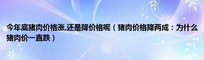 大家好,綜合小編來為大家講解下。今年底豬肉價格漲,還是降價格呢,豬肉價格降兩成:為什么豬肉價一直跌很多人還不知道,現在讓我們一起來看看吧!