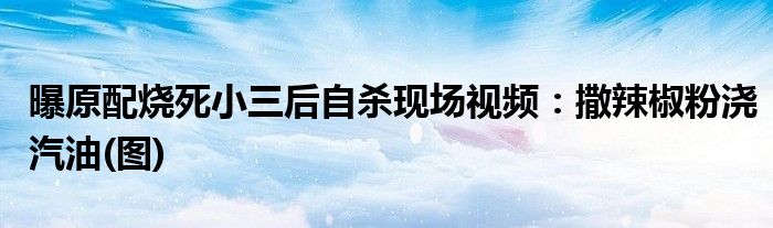 大家好,小安來為大家解答以上的問題曝原配燒死小三后自殺現(xiàn)場視頻:撒辣椒粉澆汽油(圖)這個(gè)很多人還不知道,現(xiàn)在讓我們一起來看看吧!