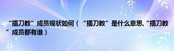 大家好,綜合小編來為大家講解下。“插刀教”成員現狀如何,“插刀教”是什么意思,“插刀教”成員都有誰很多人還不知道,現在讓我們一起來看看吧!