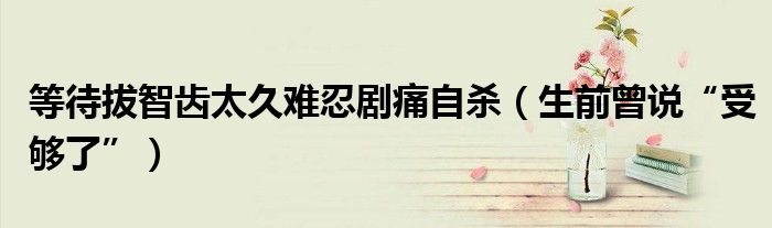 大家好,小安來為大家解答以上的問題等待拔智齒太久難忍劇痛自殺,生前曾說“受夠了”這個很多人還不知道,現在讓我們一起來看看吧!