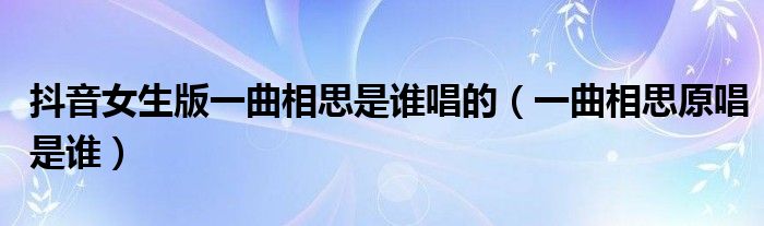 大家好,綜合小編來為大家講解下。抖音女生版一曲相思是誰唱的,一曲相思原唱是誰很多人還不知道,現在讓我們一起來看看吧!