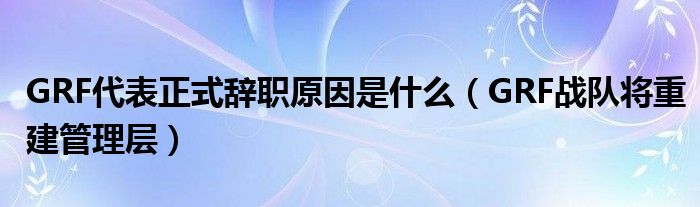大家好,綜合小編來為大家講解下。GRF代表正式辭職原因是什么,GRF戰隊將重建管理層很多人還不知道,現在讓我們一起來看看吧!