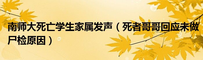大家好,綜合小編來為大家講解下。南師大死亡學生家屬發聲,死者哥哥回應未做尸檢原因很多人還不知道,現在讓我們一起來看看吧!