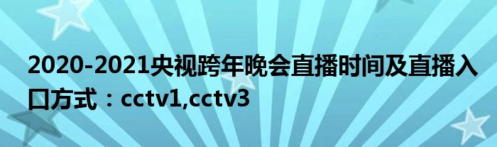 大家好,小安來為大家解答以上的問題2020-2021央視跨年晚會直播時間及直播入口方式:cctv1,cctv3這個很多人還不知道,現在讓我們一起來看看吧!