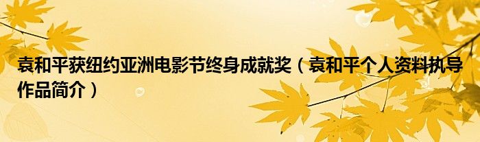 大家好,小安來為大家解答以上的問題袁和平獲紐約亞洲電影節終身成就獎,袁和平個人資料執導作品簡介這個很多人還不知道,現在讓我們一起來看看吧!