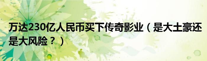 大家好,小安來為大家解答以上的問題萬達230億人民幣買下傳奇影業,是大土豪還是大風險?這個很多人還不知道,現在讓我們一起來看看吧!