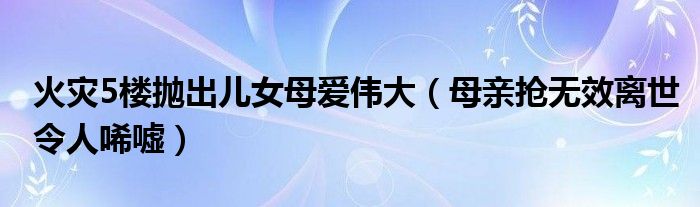 大家好,綜合小編來為大家講解下。火災5樓拋出兒女母愛偉大,母親搶無效離世令人唏噓很多人還不知道,現在讓我們一起來看看吧!