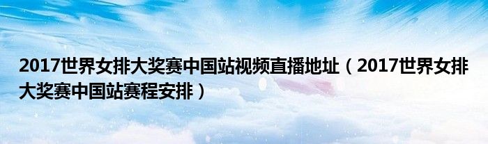 大家好,綜合小編來為大家講解下。2017世界女排大獎賽中國站視頻直播地址,2017世界女排大獎賽中國站賽程安排很多人還不知道,現在讓我們一起來看看吧!