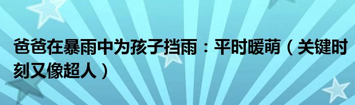 大家好,小安來為大家解答以上的問題爸爸在暴雨中為孩子擋雨:平時暖萌,關(guān)鍵時刻又像超人這個很多人還不知道,現(xiàn)在讓我們一起來看看吧!