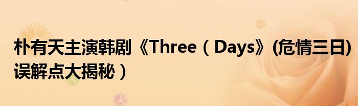 大家好,小安來為大家解答以上的問題樸有天主演韓劇《Three,Days》(危情三日)誤解點大揭秘這個很多人還不知道,現在讓我們一起來看看吧!