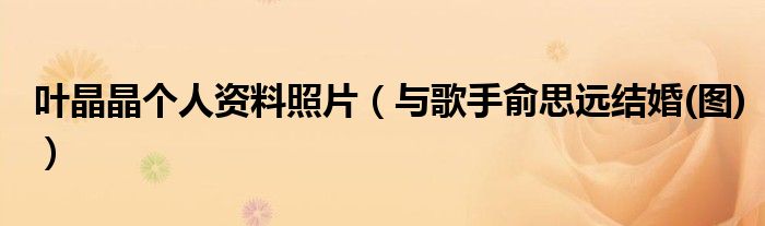 大家好,小安來為大家解答以上的問題葉晶晶個(gè)人資料照片,與歌手俞思遠(yuǎn)結(jié)婚(圖)這個(gè)很多人還不知道,現(xiàn)在讓我們一起來看看吧!