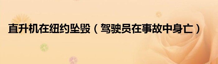 大家好,綜合小編來為大家講解下。直升機在紐約墜毀,駕駛員在事故中身亡很多人還不知道,現(xiàn)在讓我們一起來看看吧!