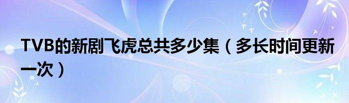 大家好,綜合小編來為大家講解下。TVB的新劇飛虎總共多少集,多長時間更新一次很多人還不知道,現在讓我們一起來看看吧!