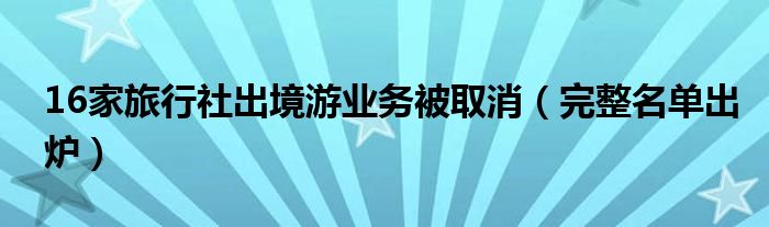 大家好,綜合小編來為大家講解下。16家旅行社出境游業務被取消,完整名單出爐很多人還不知道,現在讓我們一起來看看吧!