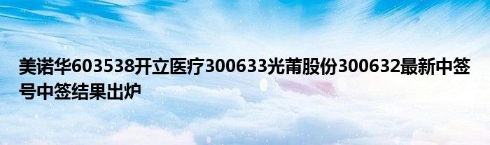 大家好,小安來為大家解答以上的問題美諾華603538開立醫療300633光莆股份300632最新中簽號中簽結果出爐這個很多人還不知道,現在讓我們一起來看看吧!