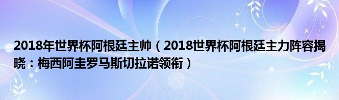大家好,綜合小編來為大家講解下。2018年世界杯阿根廷主帥,2018世界杯阿根廷主力陣容揭曉:梅西阿圭羅馬斯切拉諾領銜很多人還不知道,現在讓我們一起來看看吧!