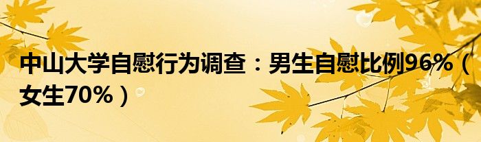 大家好,小安來為大家解答以上的問題中山大學自慰行為調查:男生自慰比例96%,女生70%這個很多人還不知道,現在讓我們一起來看看吧!