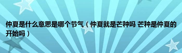 大家好,小安來為大家解答以上的問題仲夏是什么意思是哪個節氣,仲夏就是芒種嗎 芒種是仲夏的開始嗎這個很多人還不知道,現在讓我們一起來看看吧!