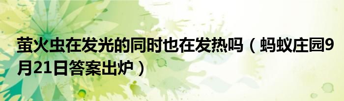 大家好,綜合小編來為大家講解下。螢火蟲在發(fā)光的同時也在發(fā)熱嗎,螞蟻莊園9月21日答案出爐很多人還不知道,現(xiàn)在讓我們一起來看看吧!