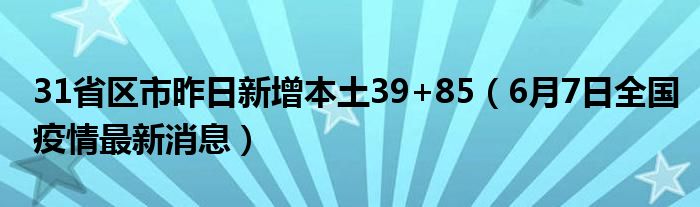 大家好,小安來為大家解答以上的問題31省區市昨日新增本土39+85,6月7日全國疫情最新消息這個很多人還不知道,現在讓我們一起來看看吧!