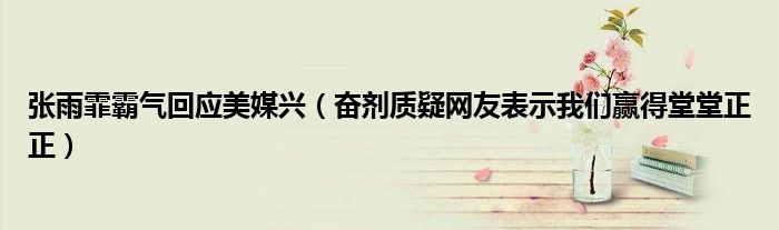大家好,綜合小編來為大家講解下。張雨霏霸氣回應美媒興,奮劑質疑網友表示我們贏得堂堂正正很多人還不知道,現在讓我們一起來看看吧!