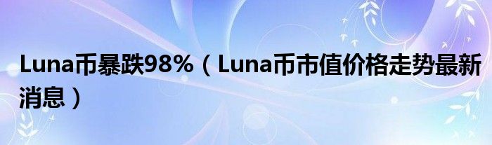 大家好,小安來為大家解答以上的問題Luna幣暴跌98%,Luna幣市值價格走勢最新消息這個很多人還不知道,現(xiàn)在讓我們一起來看看吧!