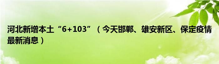 大家好,小安來為大家解答以上的問題河北新增本土“6+103”,今天邯鄲、雄安新區、保定疫情最新消息這個很多人還不知道,現在讓我們一起來看看吧!
