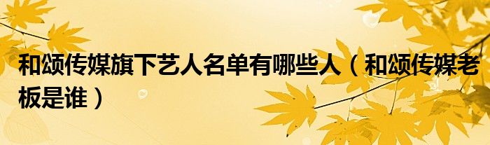 大家好,小安來為大家解答以上的問題和頌傳媒旗下藝人名單有哪些人,和頌傳媒老板是誰這個很多人還不知道,現在讓我們一起來看看吧!