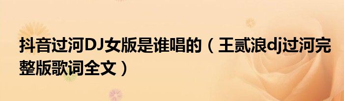 在抖音上面非?;鸬摹哆^河》DJ女版的音樂就是王貳浪演唱的版本,王貳浪在抖音上面也是非常紅的一位翻唱歌手,《過河》這首歌曲她的翻唱也是別有一番風(fēng)味。