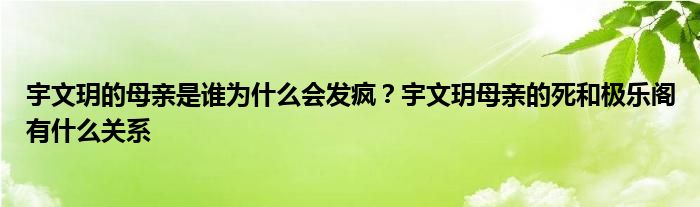 大家好,小安來為大家解答以上的問題宇文玥的母親是誰為什么會發瘋?宇文玥母親的死和極樂閣有什么關系這個很多人還不知道,現在讓我們一起來看看吧!