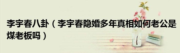 大家好,小安來為大家解答以上的問題李宇春八卦,李宇春隱婚多年真相如何老公是煤老板嗎這個很多人還不知道,現在讓我們一起來看看吧!