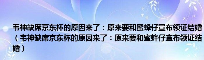 大家好,綜合小編來為大家講解下。韋神缺席京東杯的原因來了:原來要和蜜蜂仔宣布領證結婚,韋神缺席京東杯的原因來了:原來要和蜜蜂仔宣布領證結婚很多人還不知道,現在讓我們一起來看看吧!