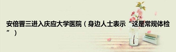 大家好,綜合小編來為大家講解下。安倍晉三進入慶應大學醫(yī)院,身邊人士表示“這是常規(guī)體檢”很多人還不知道,現(xiàn)在讓我們一起來看看吧!