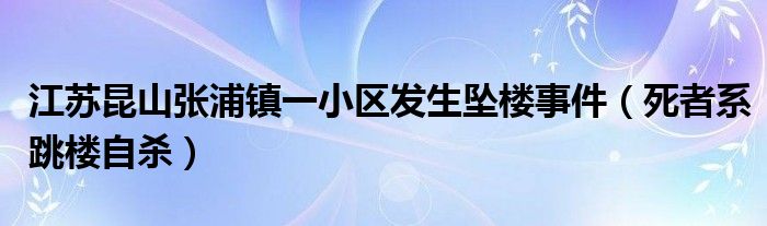 大家好,小安來為大家解答以上的問題江蘇昆山張浦鎮(zhèn)一小區(qū)發(fā)生墜樓事件,死者系跳樓自殺這個(gè)很多人還不知道,現(xiàn)在讓我們一起來看看吧!