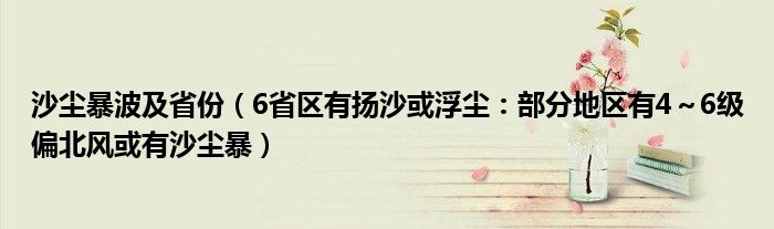 大家好,綜合小編來為大家講解下。沙塵暴波及省份,6省區有揚沙或浮塵:部分地區有4~6級偏北風或有沙塵暴很多人還不知道,現在讓我們一起來看看吧!