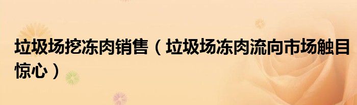 大家好,綜合小編來為大家講解下。垃圾場挖凍肉銷售,垃圾場凍肉流向市場觸目驚心很多人還不知道,現在讓我們一起來看看吧!