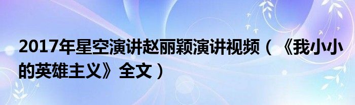 2017年星空演講趙麗穎演講視頻 《我小小的英雄主義》全文